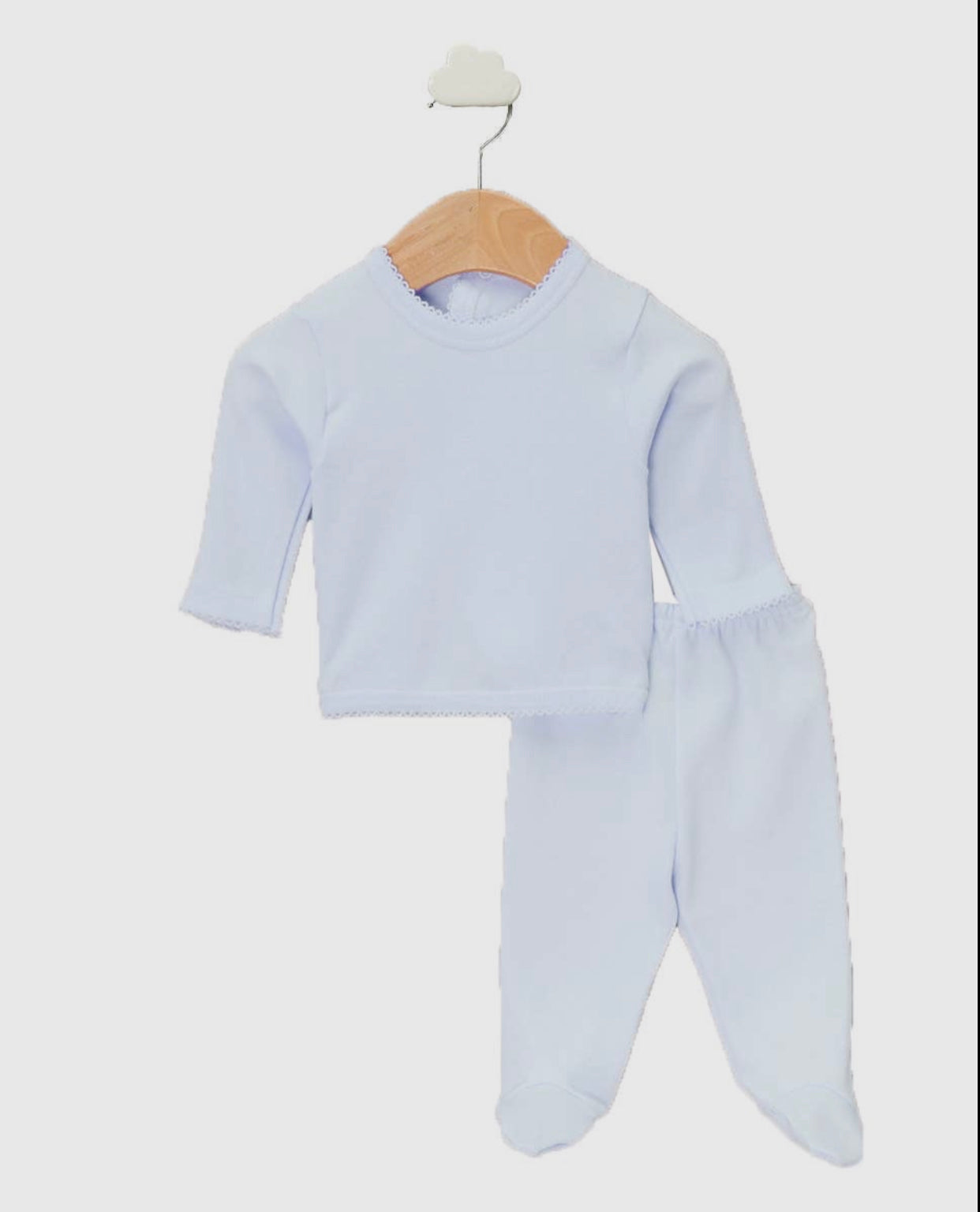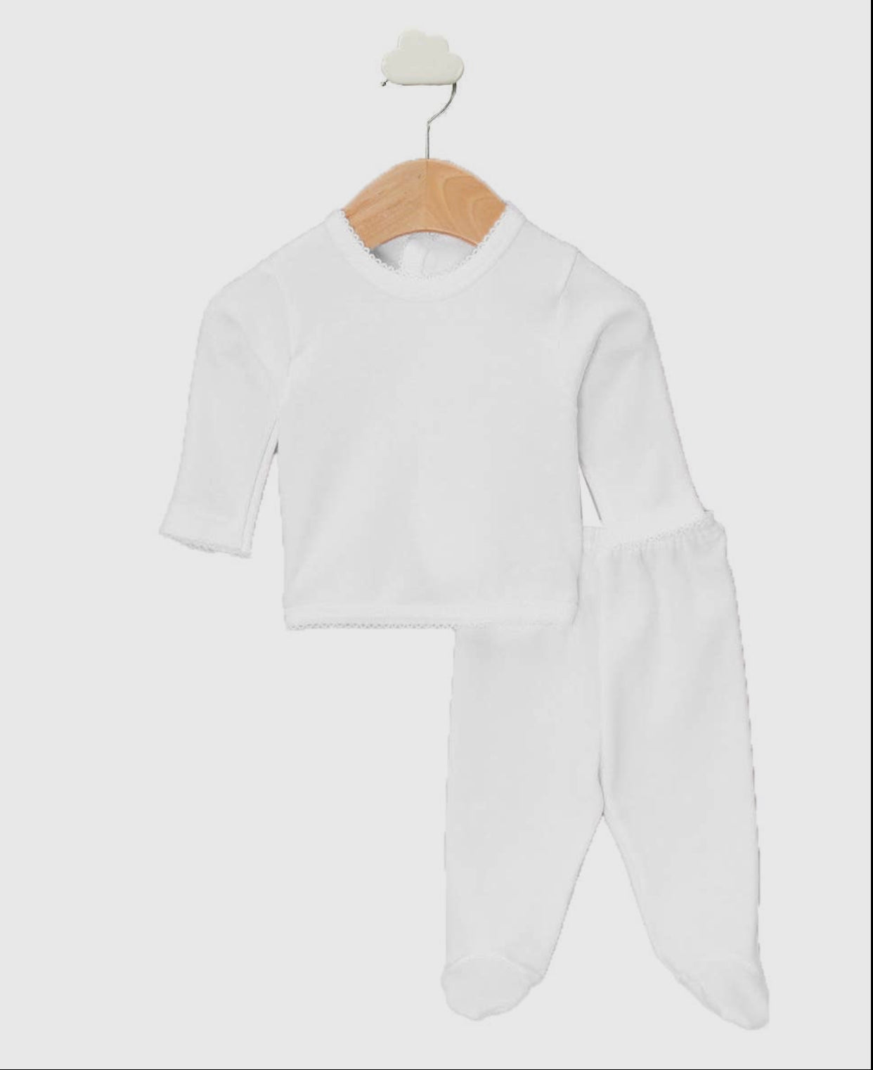 Available in a selection of classic hues including White, Cream, Blue, and Pink, each set offers timeless elegance for your baby's wardrobe.
