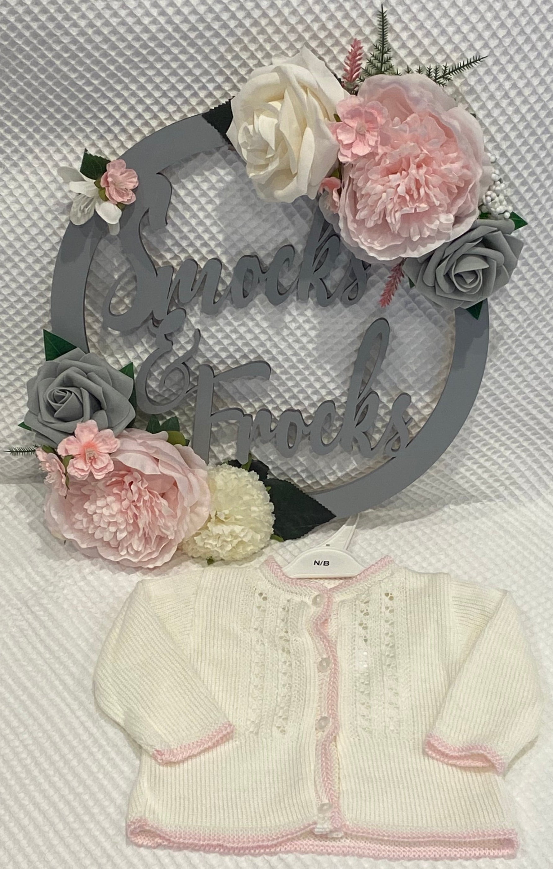 Discover the perfect layering piece for your little one with this charming knitted cardigan. Available in two delightful colour combinations—crisp white with rosy pink accents or soft pink with white detailing—this versatile style complements any outfit. Crafted for newborns through 24-month-olds, it's an essential wardrobe staple that grows with your baby, offering both comfort and timeless appeal.