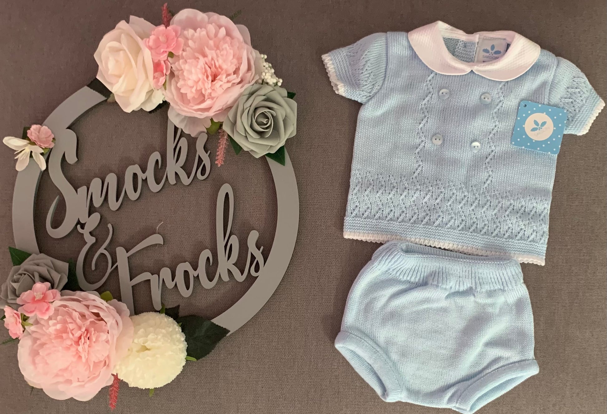 Blue 2 Piece Knitted Top and Bloomer Set - 22RF-613