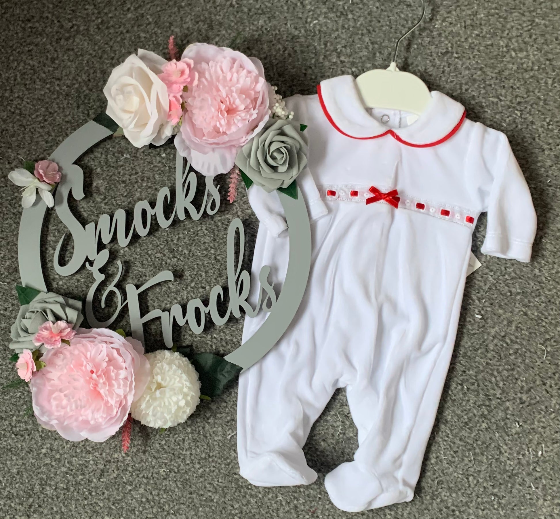 Velour Babygrow with Bow Detail - SG145