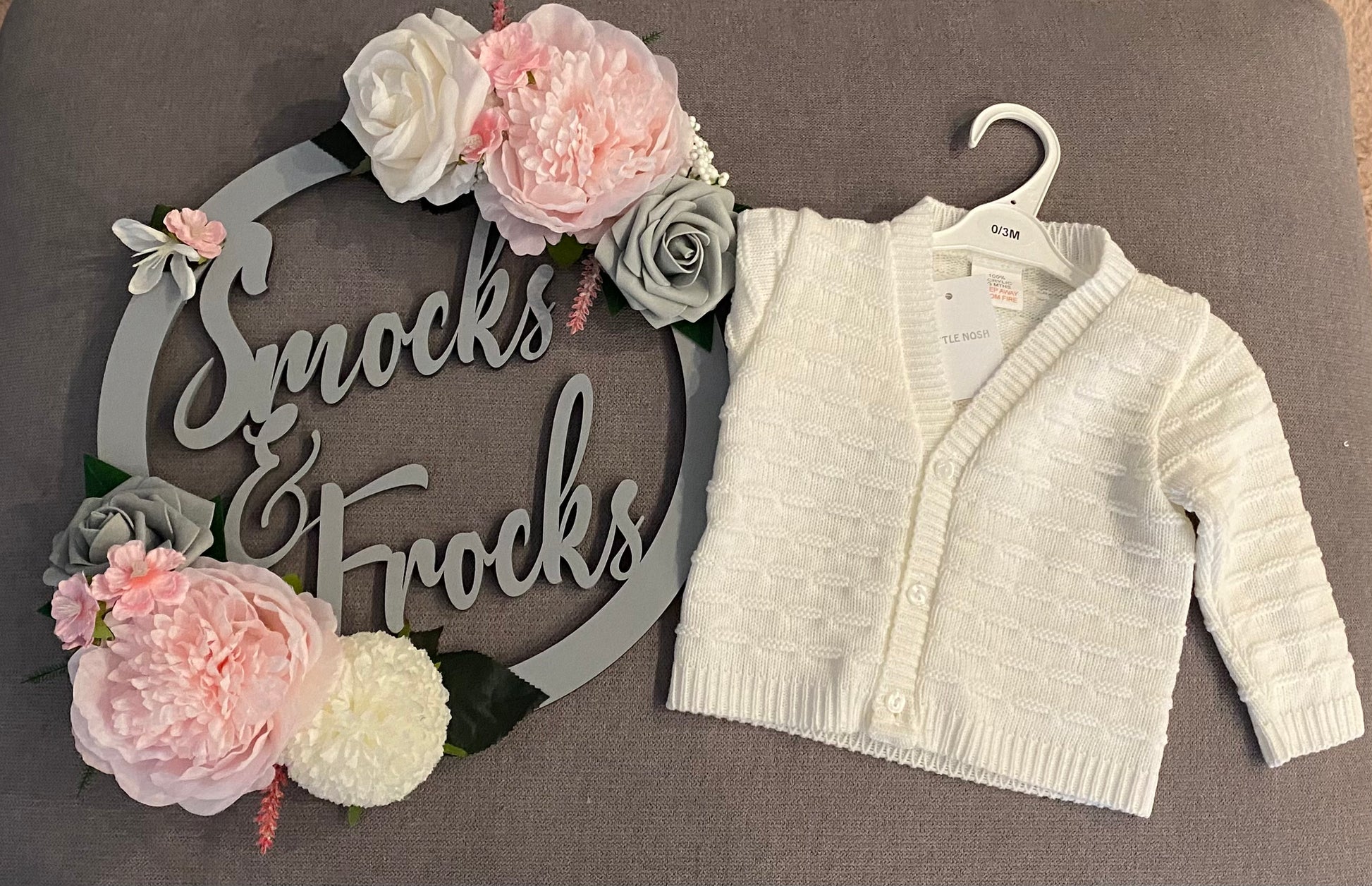 Wrap your little one in cozy elegance with our White Cardigan, available in sizes from newborn to 18 months. Here's what makes it special: